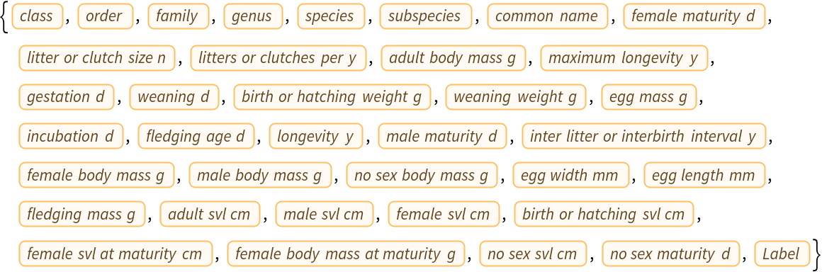 Wolfram Research, "Amniote Life History EntityStore" from the Wolfram Data Repository (2016) https://doi.org/10.24097/wolfram.95462.data