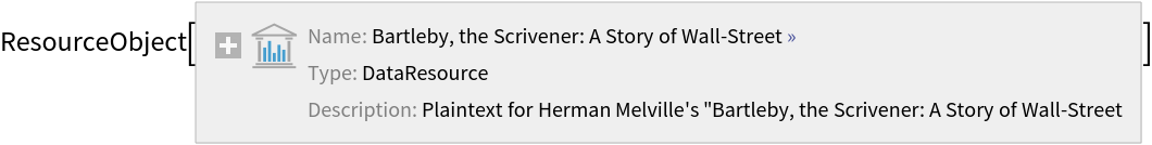 Wolfram Research, "Bartleby, the Scrivener: A Story of WallStreet" from the Wolfram Data Repository (2016) https://doi.org/10.24097/wolfram.44066.data