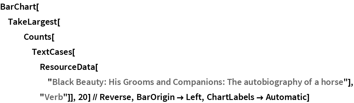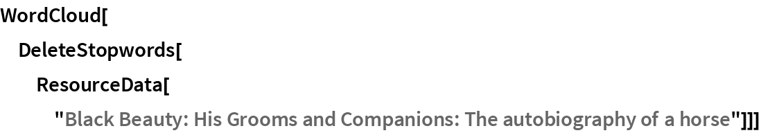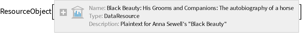 Wolfram Research, "Black Beauty: His Grooms and Companions: The autobiography of a horse" from the Wolfram Data Repository (2016) https://doi.org/10.24097/wolfram.79848.data
