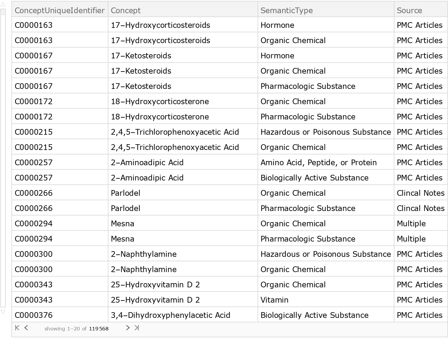 Wolfram Research, "Clinical Concepts from Massive Sources of Medical Data" from the Wolfram Data Repository (2018)