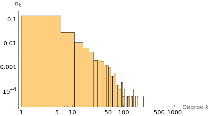 Show the power-law degree distribution of the graph:
