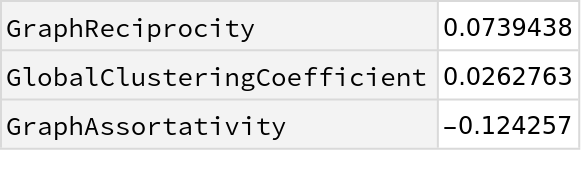 Show a table of properties: