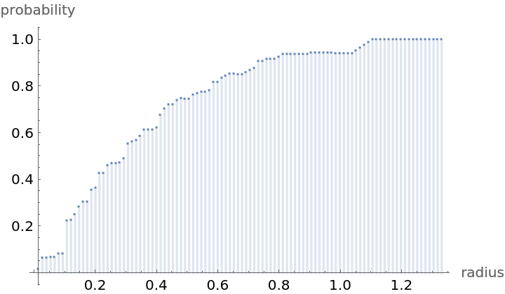 Compute probability of finding a point within given radius of an existing point - NearestNeighborG is the CDF of the nearest neighbor distribution:
