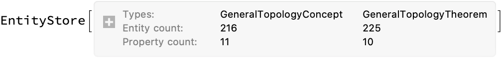Wolfram Research, "General Topology EntityStore" from the Wolfram Data Repository (2016) https://doi.org/10.24097/wolfram.56398.data
