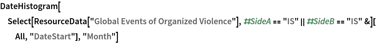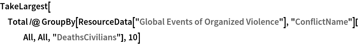 Wolfram Research, "Global Events of Organized Violence" from the Wolfram Data Repository (2017) https://doi.org/10.24097/wolfram.41759.data