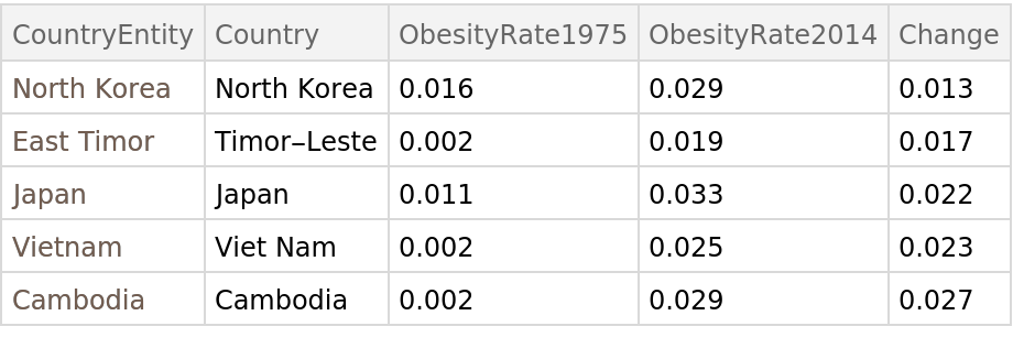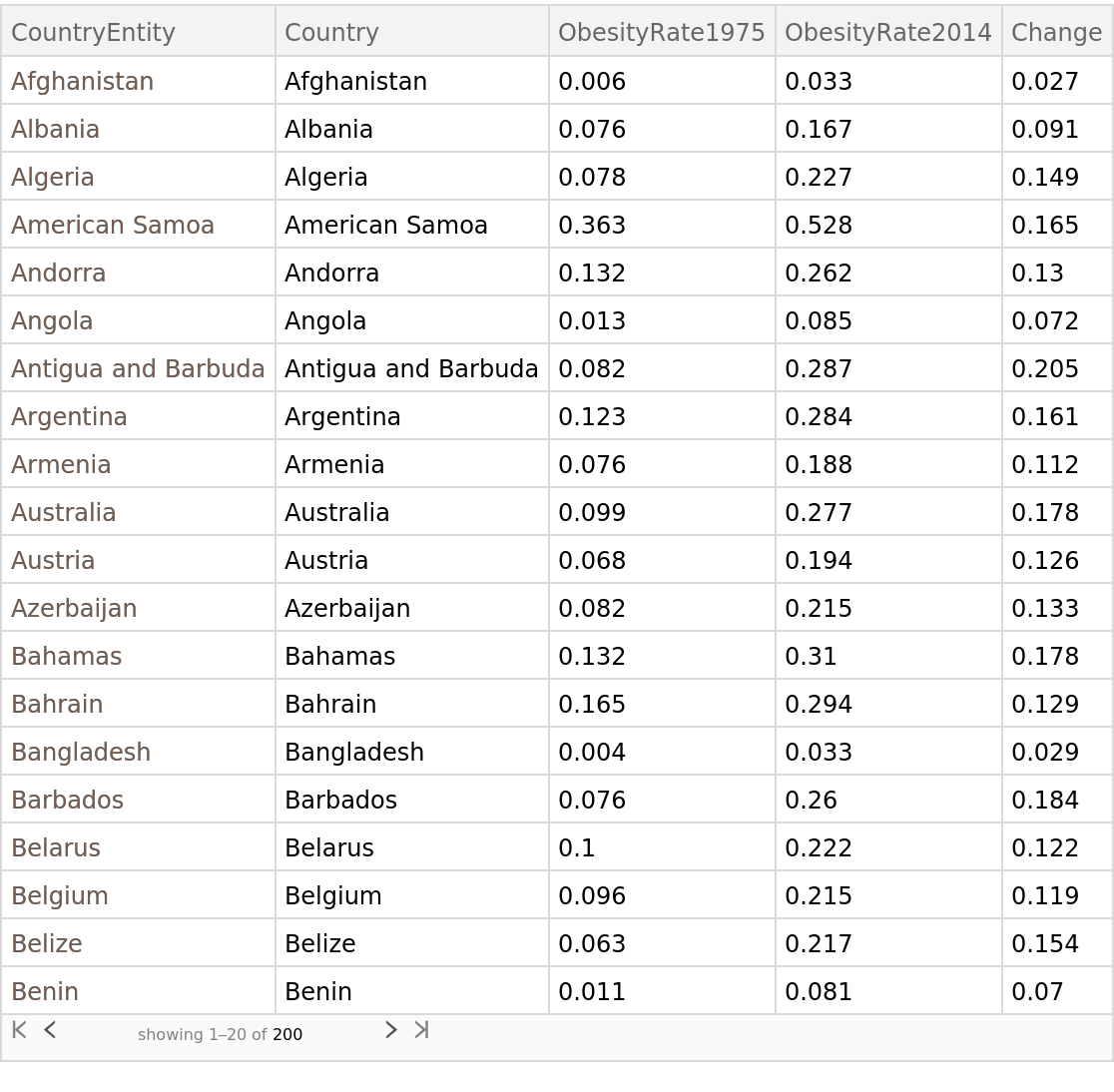 Wolfram Research, "Global Obesity Rates" from the Wolfram Data Repository (2017) https://doi.org/10.24097/wolfram.13096.data