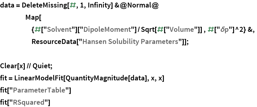 A Plot of the fit shows the general trend, although there are number of examples for which the polar parameter is set to zero for very weakly polar molecules: