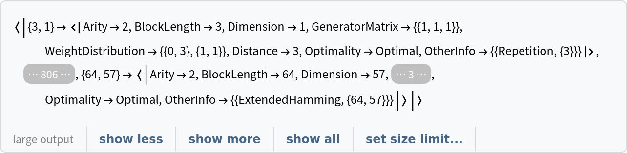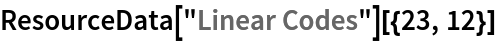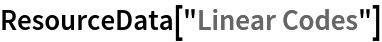 Wolfram Research, "Linear Codes" from the Wolfram Data Repository (2017) https://doi.org/10.24097/wolfram.23530.data