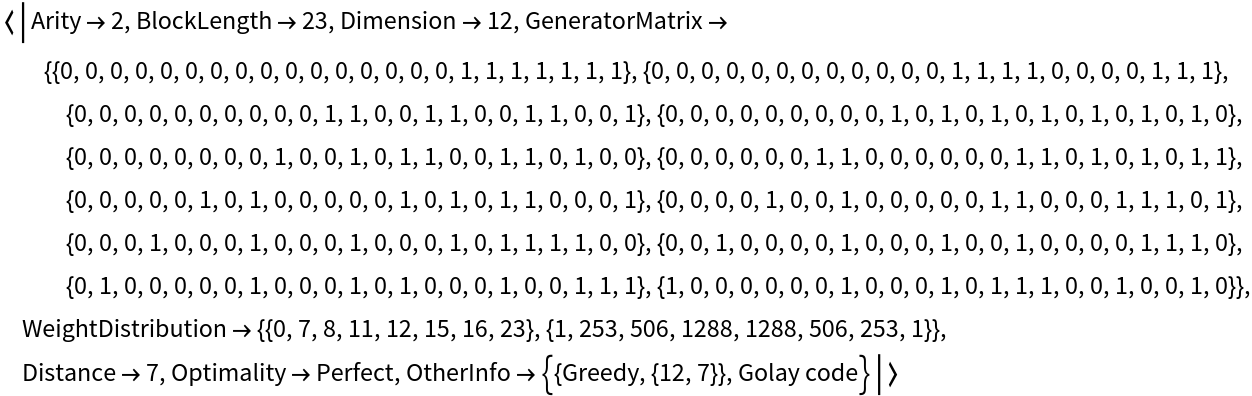 Show data for the Golay code (A further exploration can be found at the Wolfram Demonstration Golay Code):
