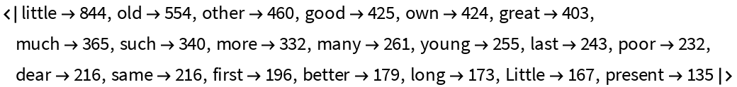 Show the most frequently used adjectives: