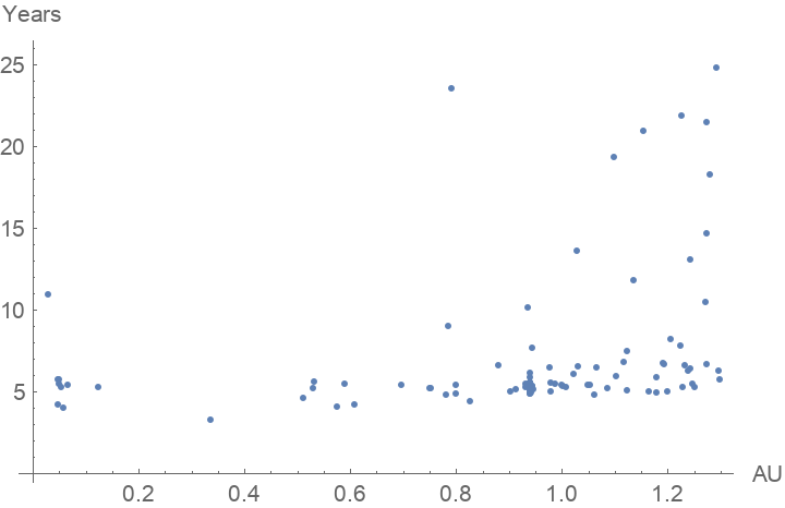 Plot distance at perihelion versus orbital period for all near-earth comets in the dataset: