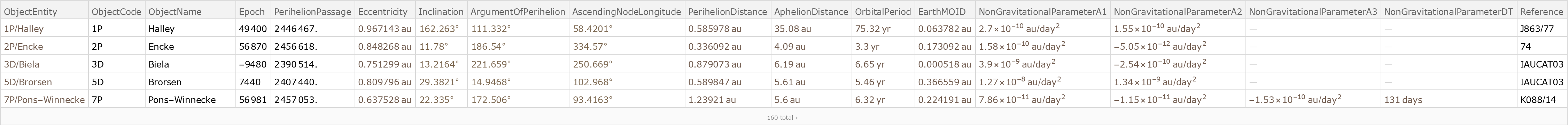 Wolfram Research, "Near-Earth Comets" from the Wolfram Data Repository (2016) https://doi.org/10.24097/wolfram.80132.data
