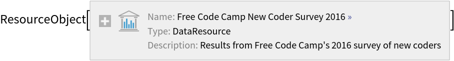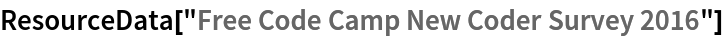 Wolfram Research, "Free Code Camp New Coder Survey 2016" from the Wolfram Data Repository (2017) https://doi.org/10.24097/wolfram.66609.data