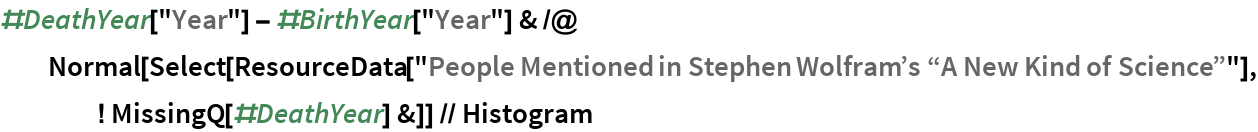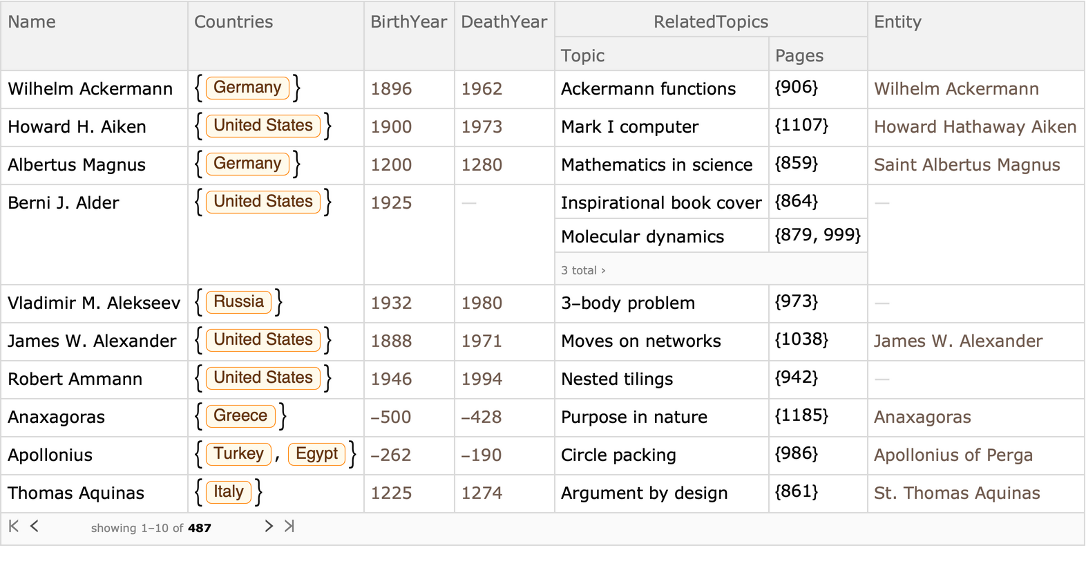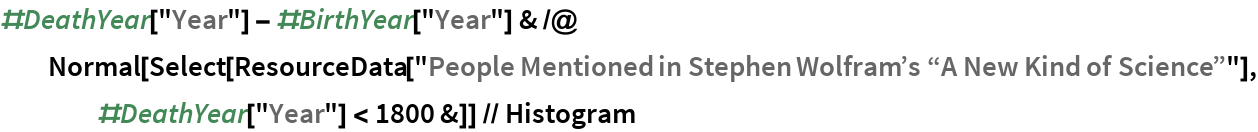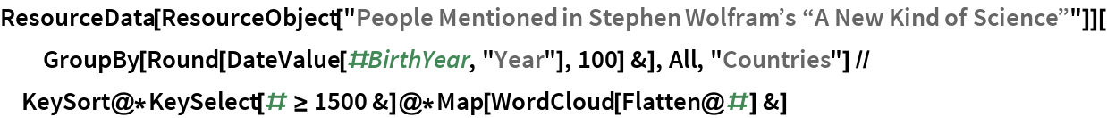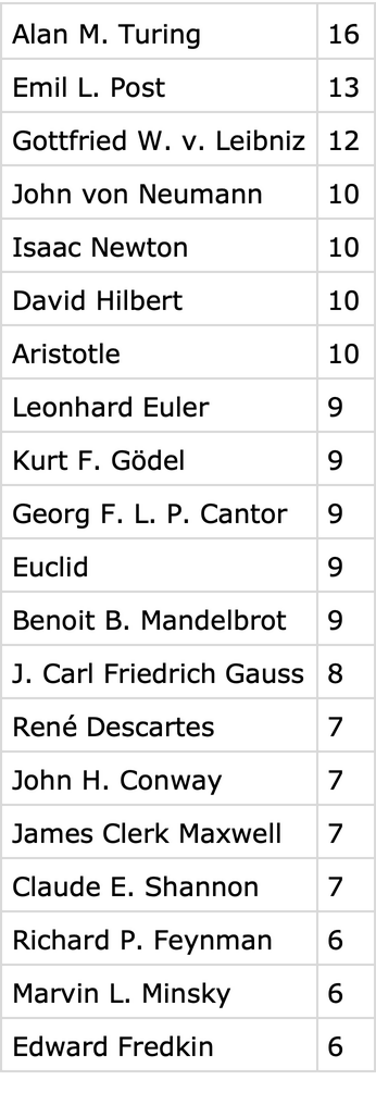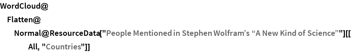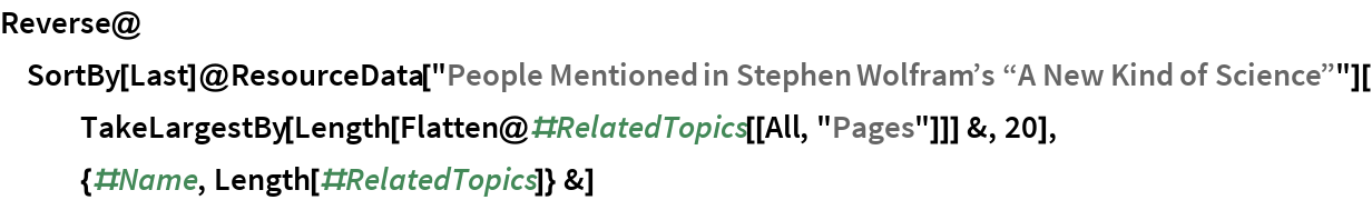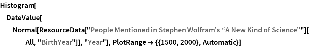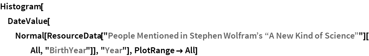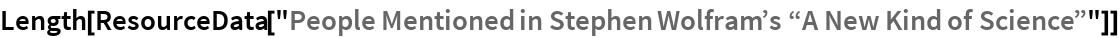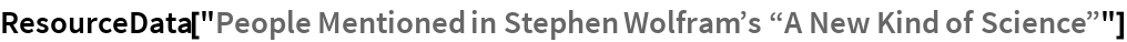 Wolfram Research, "People Mentioned in Stephen Wolfram’s “A New Kind of Science”" from the Wolfram Data Repository (2017) https://doi.org/10.24097/wolfram.64419.data