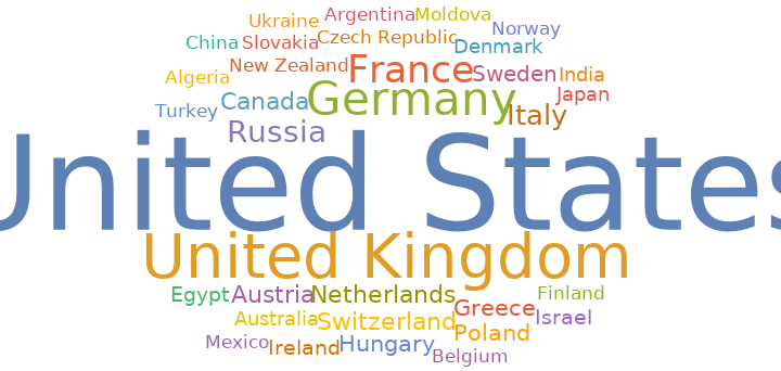 The countries given for people are based on countries currently at the relevant geographic locations.