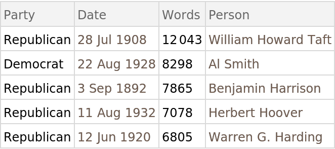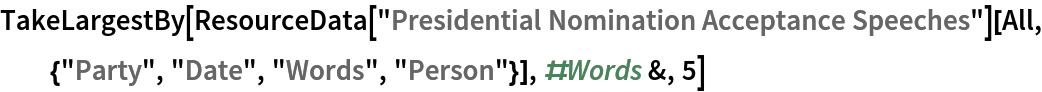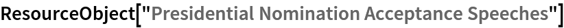 Wolfram Research, "Presidential Nomination Acceptance Speeches" from the Wolfram Data Repository (2016) https://doi.org/10.24097/wolfram.95924.data