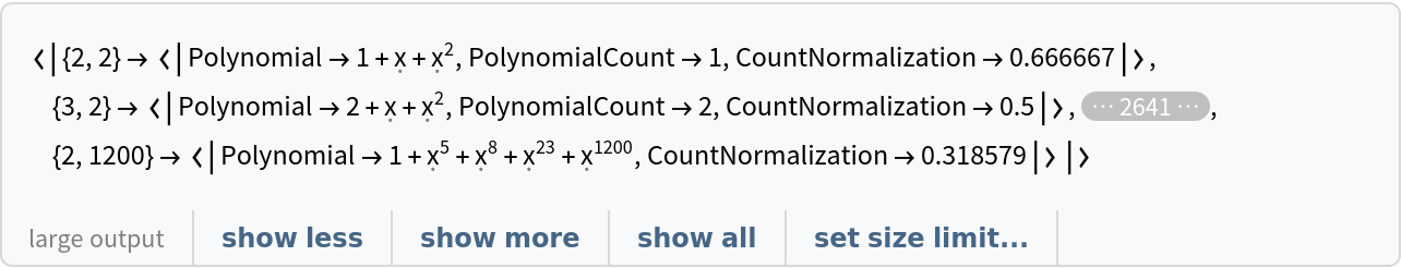 Show the data for GF(267). The number 267-1 has a factorization 193707721×761838257287 (Cole, 1903) that gives a normalization close to 1:
