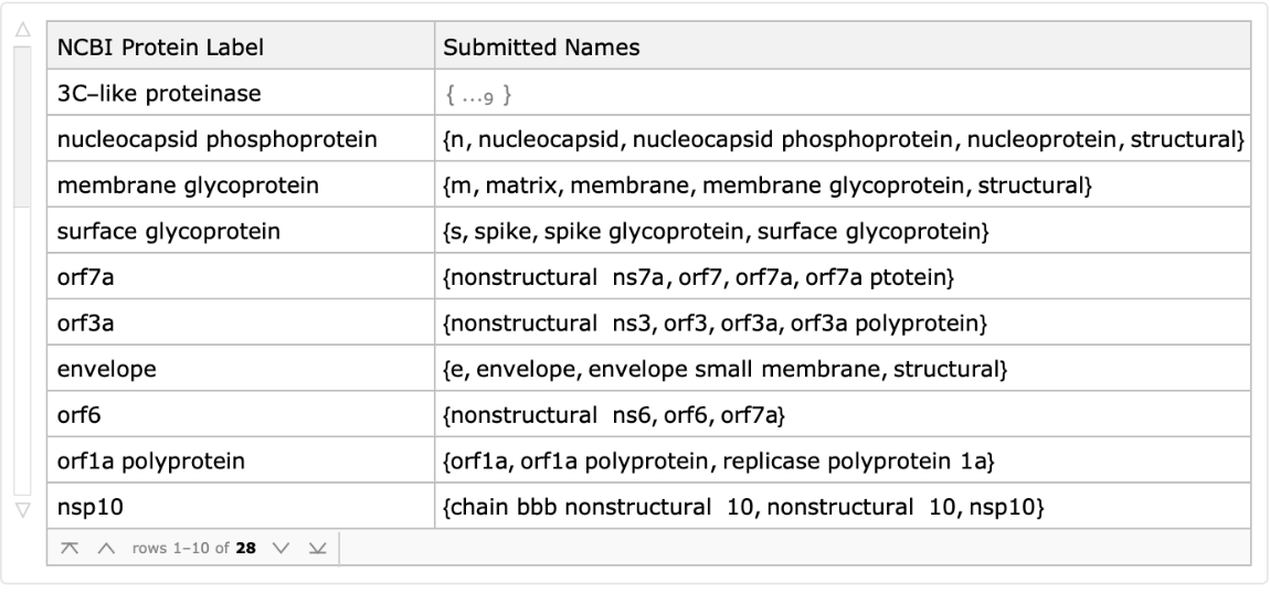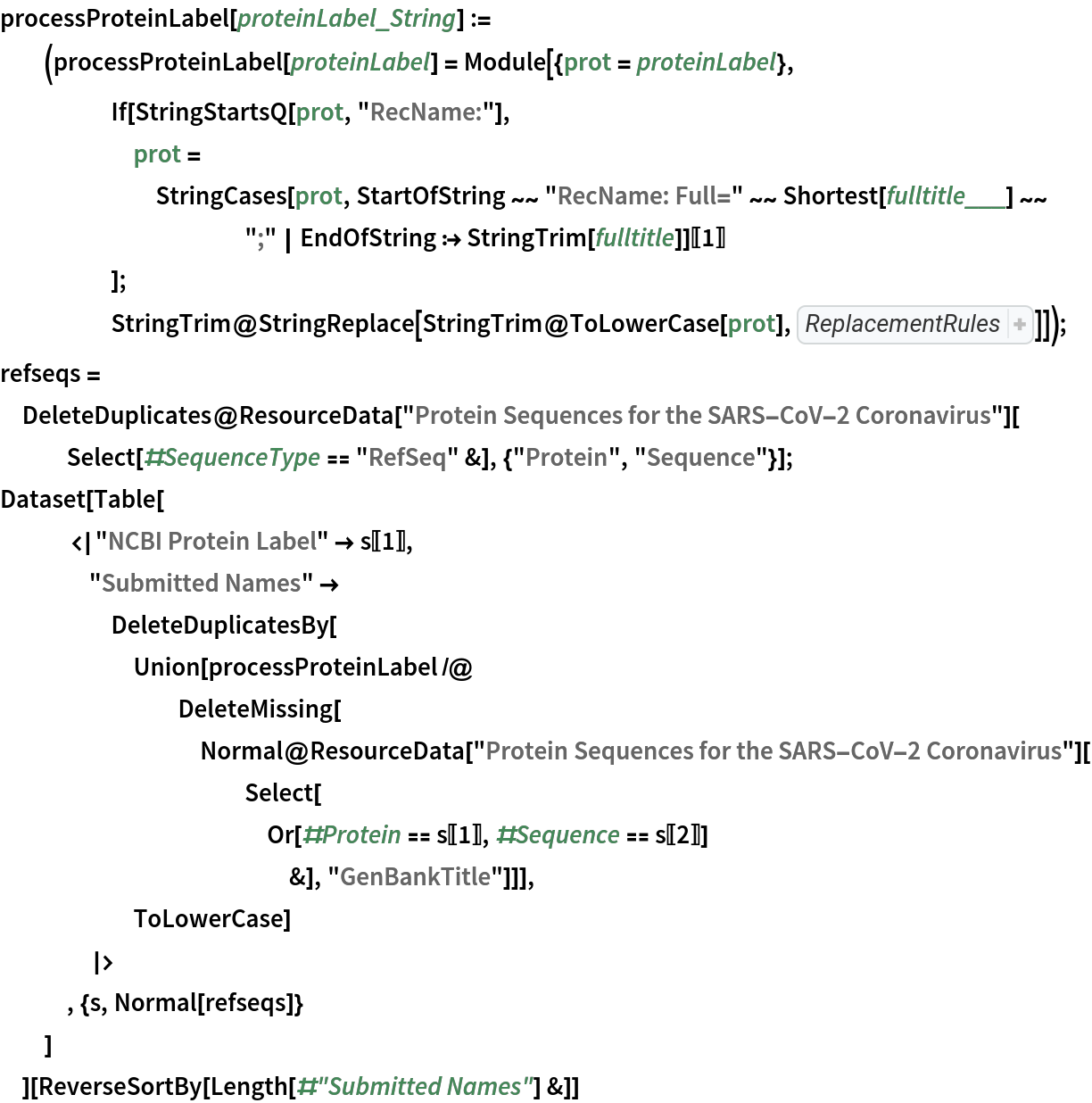 Wolfram Research, "Protein Sequences for the SARS-CoV-2 Coronavirus" from the Wolfram Data Repository (2021)