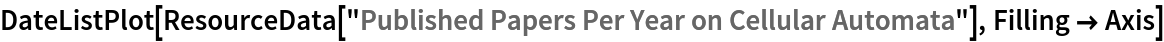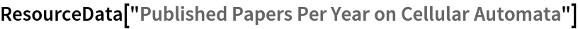 Wolfram Research, "Published Papers Per Year on Cellular Automata" from the Wolfram Data Repository (2017) https://doi.org/10.24097/wolfram.44993.data