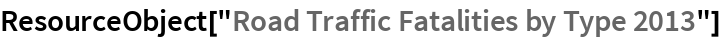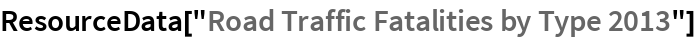 Wolfram Research, "Road Traffic Fatalities by Type 2013" from the Wolfram Data Repository (2016) https://doi.org/10.24097/wolfram.48469.data