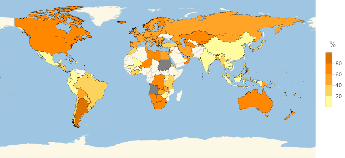 Road traffic deaths by country and type of road user in 2013, reported as a percentage of all road traffic fatalities.