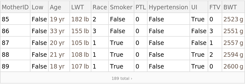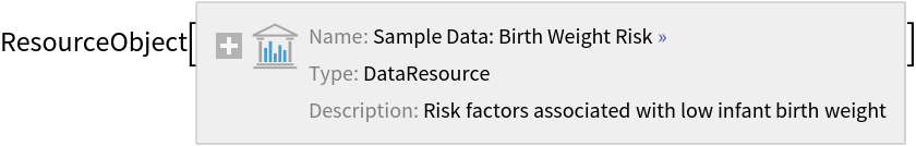 Wolfram Research, "Sample Data: Birth Weight Risk" from the Wolfram Data Repository (2016) https://doi.org/10.24097/wolfram.85529.data