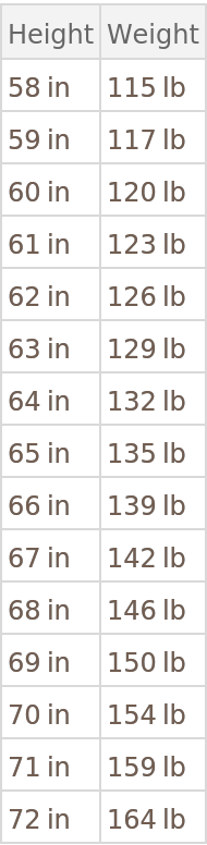 Wolfram Research, "Sample Data: Female Heights And Weights" from the Wolfram Data Repository (2016) https://doi.org/10.24097/wolfram.84616.data