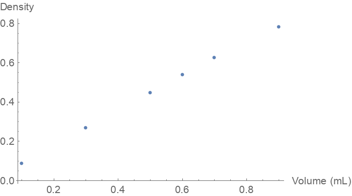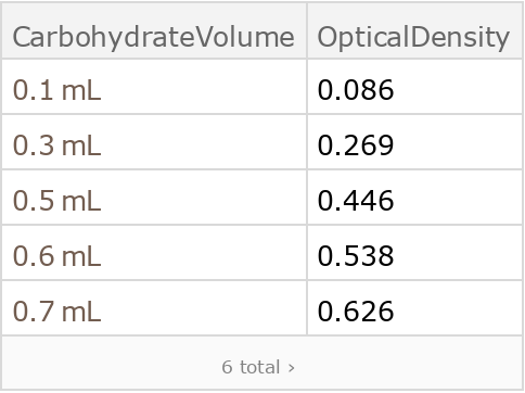 Generate a plot of the carbohydrate volume in mL by optical density of formaldehyde: