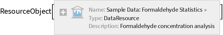 Wolfram Research, "Sample Data: Formaldehyde Statistics" from the Wolfram Data Repository (2016) https://doi.org/10.24097/wolfram.28126.data