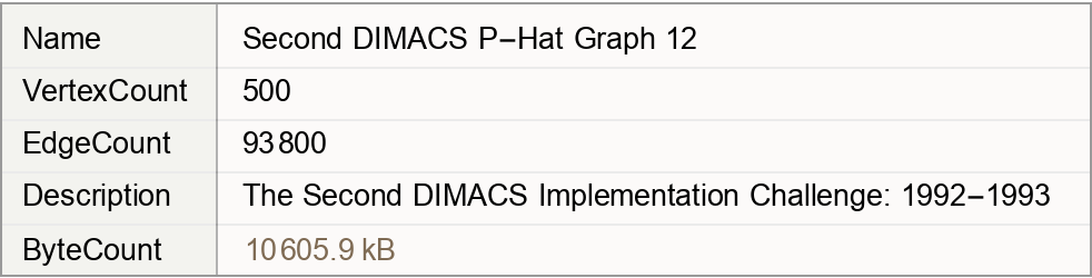 Wolfram Research, "Second DIMACS P-Hat Graph 12" from the Wolfram Data Repository (2019)