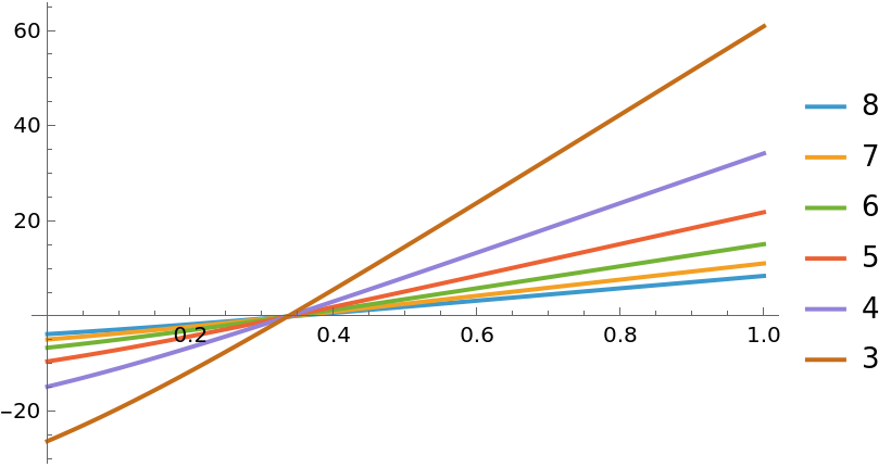 Plot[%, {t, 0, 1}, PlotLegends -> Range[8, 3, -1], PlotRange -> All]