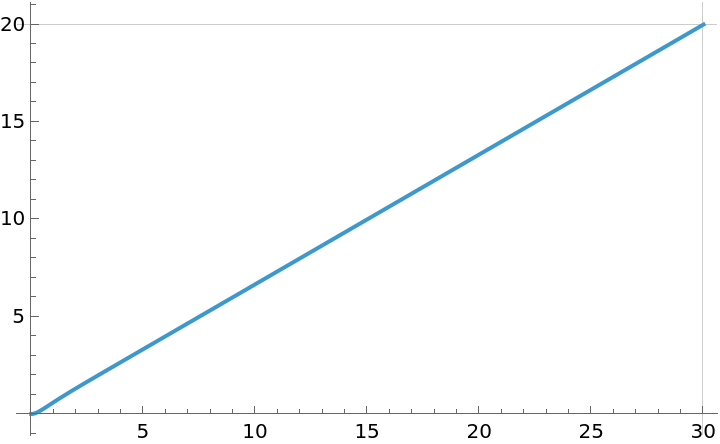 Plot[%/Degree, {t, 0, 30}, GridLines -> {{30}, {20}}]
