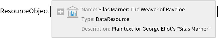 Wolfram Research, "Silas Marner: The Weaver of Raveloe" from the Wolfram Data Repository (2016) https://doi.org/10.24097/wolfram.04514.data