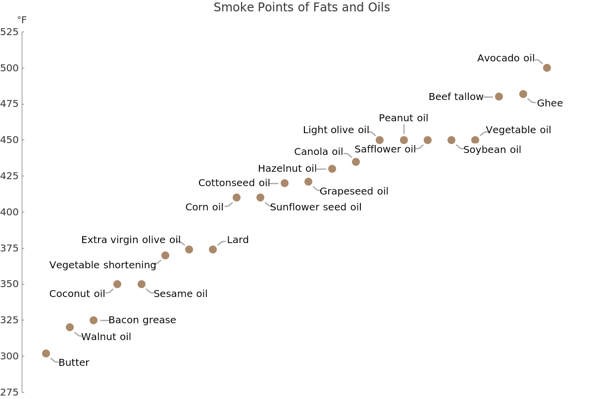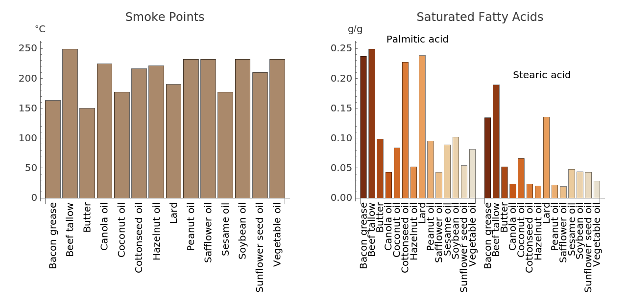 Plant-based oils generally have fewer free fatty acids than animal fats. Therefore, vegetable oils like canola and corn oil tend to be more stable and have a higher smoke point.