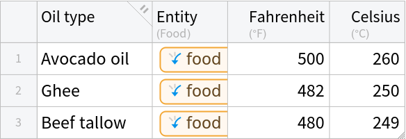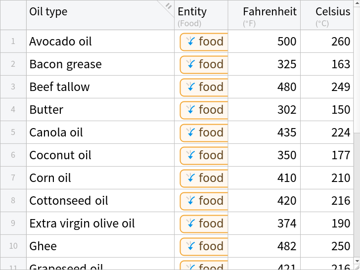This data contains the smoke point values for 22 cooking fats and oils.