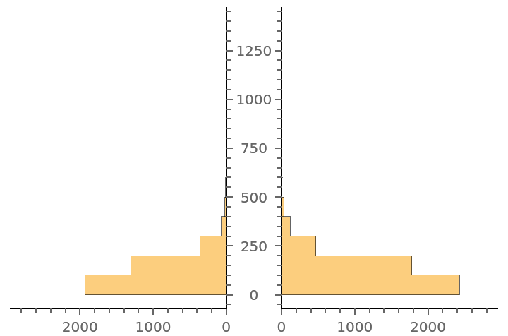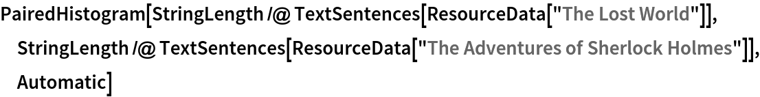 StringLength /@ TextSentences[ResourceData["The Lost World"]], StringLength /@ TextSentences[