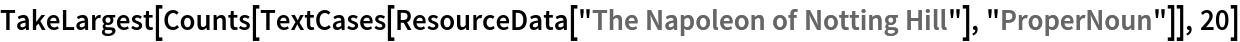 Counts[TextCases[ResourceData["The Napoleon of Notting Hill"], "ProperNoun"]], 20]