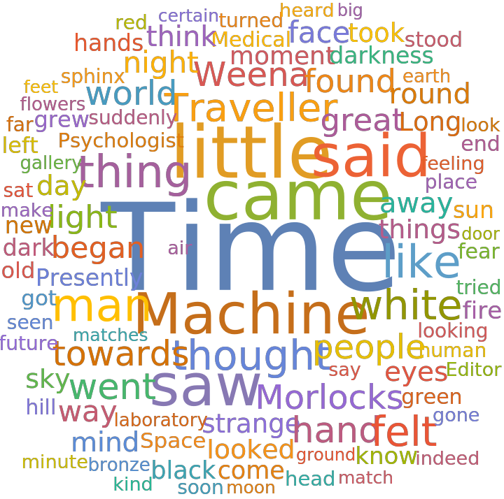 WordCloud[DeleteStopwords[ResourceData["The Time Machine"]]]