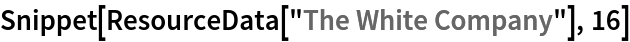 Wolfram Research, "The White Company" from the Wolfram Data Repository (2016) https://doi.org/10.24097/wolfram.01659.data