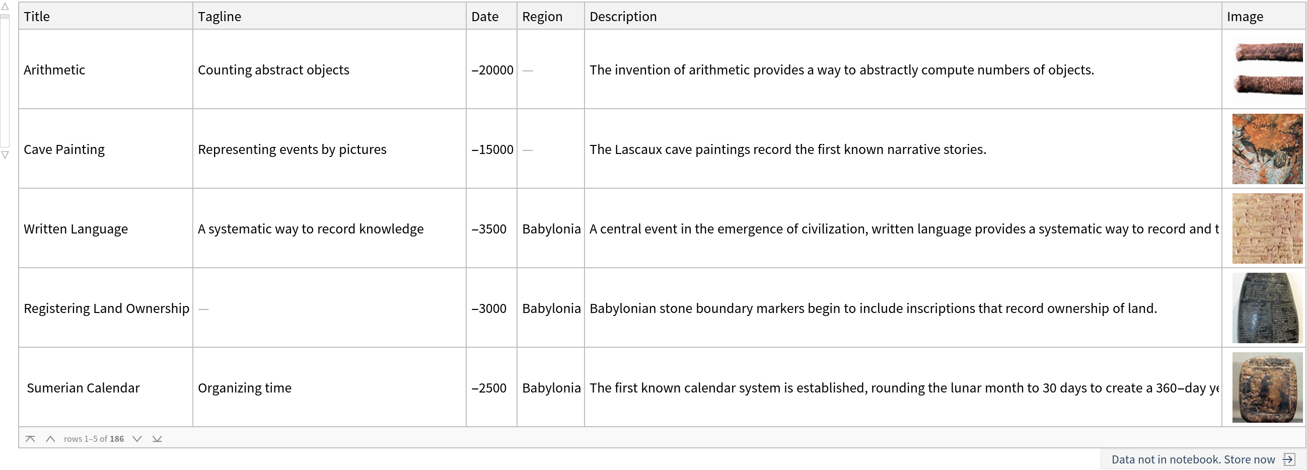 Wolfram Research, "Timeline of Systematic Data & Computable Knowledge" from the Wolfram Data Repository (2017) https://doi.org/10.24097/wolfram.88445.data