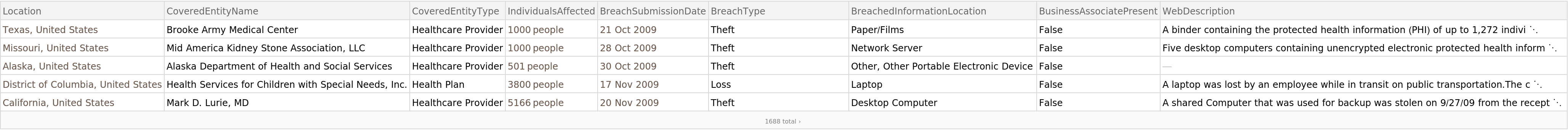 Wolfram Research, "US Health Data Breaches" from the Wolfram Data Repository (2016) https://doi.org/10.24097/wolfram.69604.data